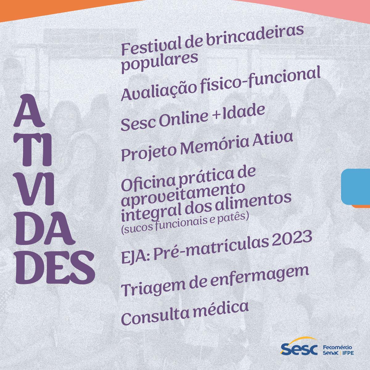 - LAZER: Festival de brincadeiras populares, Avaliação físico-funcional;