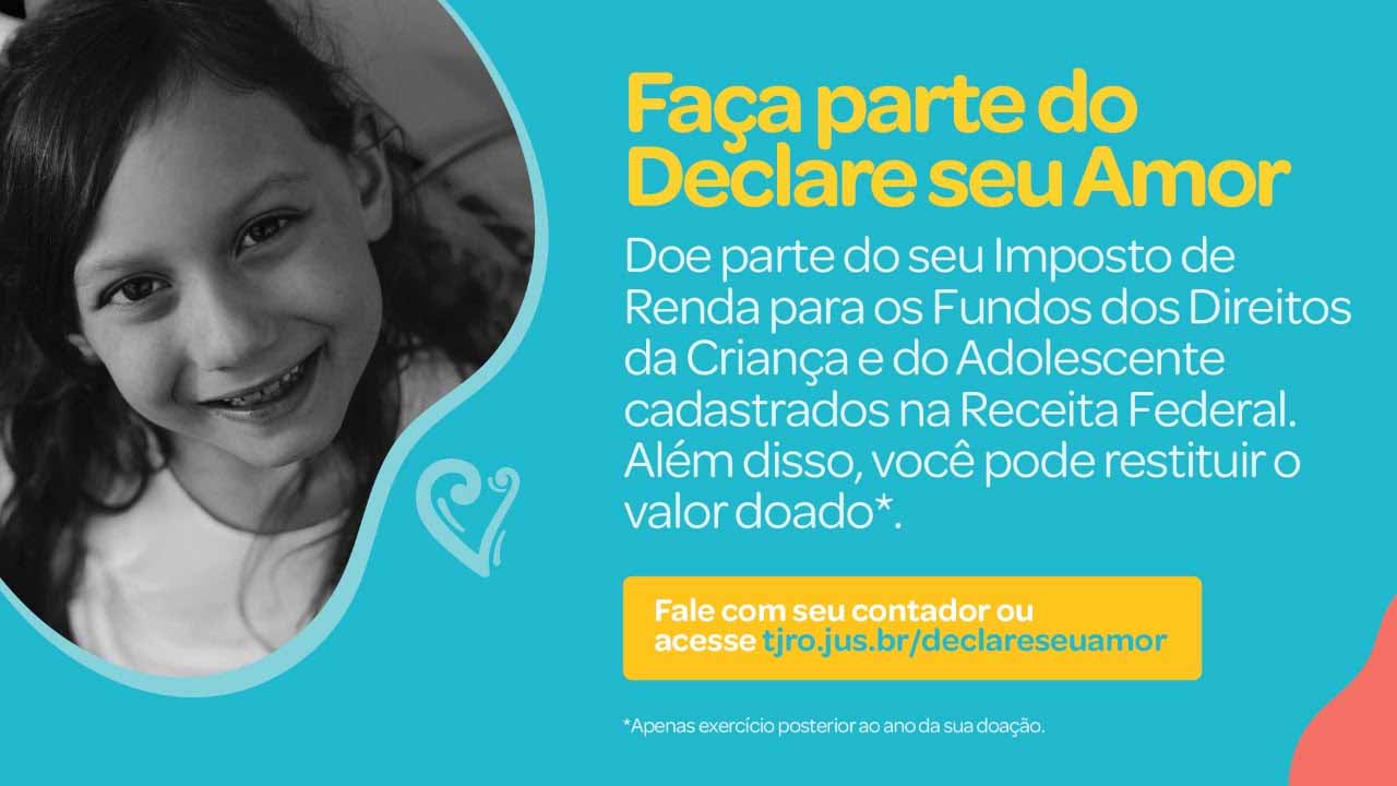 O Projeto Declare seu Amor nasceu em 2018, durante o período de recolhimento do Imposto de Renda. Com adesão nacional de artistas e órgãos públicos e privados como o Conselho Nacional de Justiça (CNJ), o Tribunal de Justiça de Rondônia (TJRO), por meio da Corregedoria-Geral da Justiça de Rondônia (CGJ), começou a incentivar os contribuintes a destinarem parte do imposto devido ao Leão para o FIA.