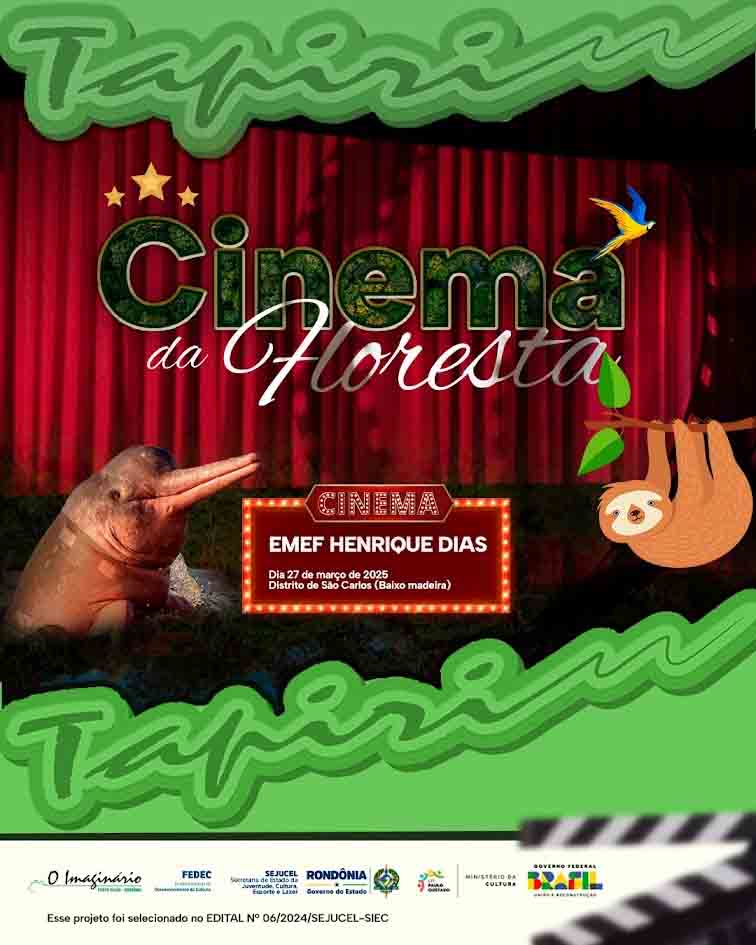 O Projeto Centro Cultural TAPIRI – CINEMA DA FLORESTA tem como foco principal equipar, modernizar, transformando e subsidiando os equipamentos do Espaço Cultural Tapiri, em Porto Velho. Neste mês o projeto exibe filmes em escolas da rede pública na capital, levando cinema a milhares de estudantes.