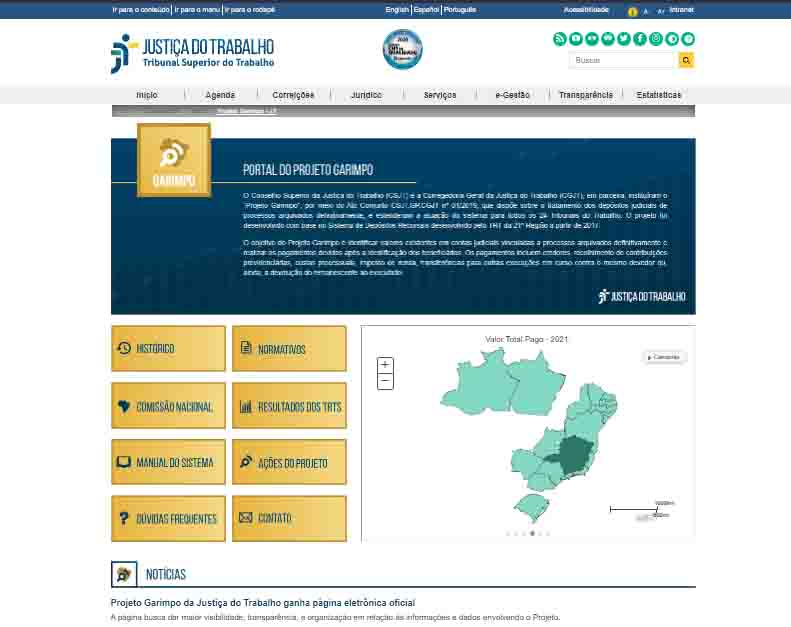 O Projeto Garimpo da Justiça do Trabalho agora conta com uma página eletrônica especial. Dados dos valores identificados em contas judiciais não movimentadas em todo o Brasil, atos normativos, histórico da iniciativa, respostas às dúvidas mais frequentes e um compilado das ações do projeto podem ser encontrados em um único lugar: o Portal do Projeto Garimpo.