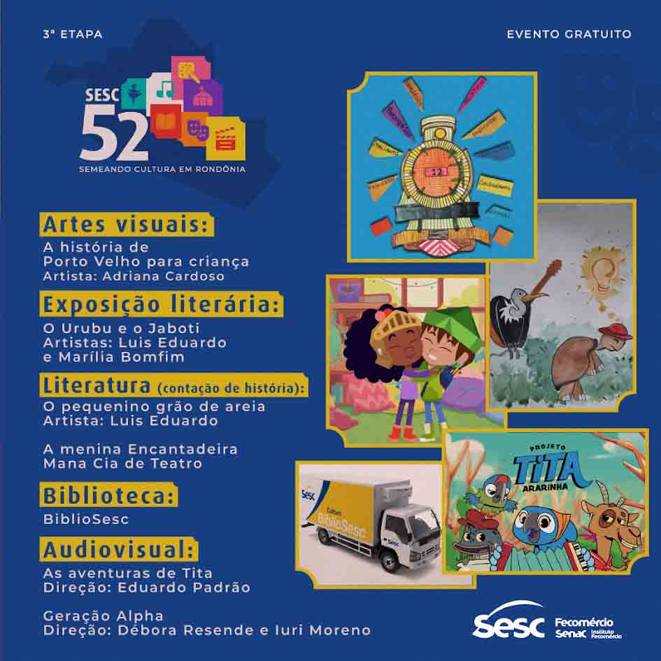A 1ª etapa aconteceu em Porto Velho com contações de histórias em 20 escolas municipais em Porto Velho e também na região do Baixo Madeira. O Sesc 52 é o maior projeto de divulgação e circulação de artes de Rondônia, por isso visita todos os 52 municípios de Rondônia em etapas.