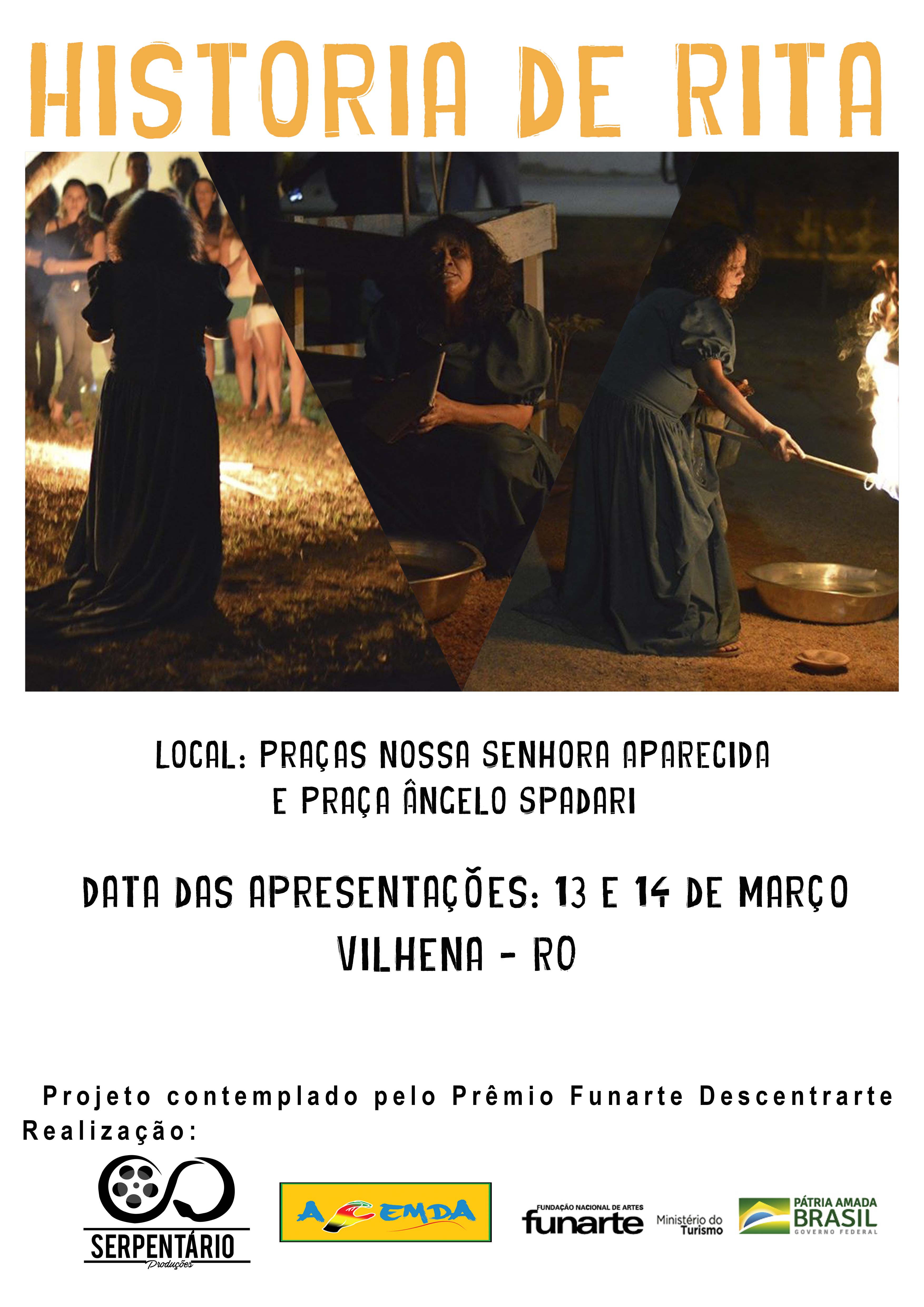 Com objetivo promover atividades culturais gratuitas para a população será apresentado nos dias 13 e 14 de março, em Vilhena o espetáculo teatral “História de Rita”.