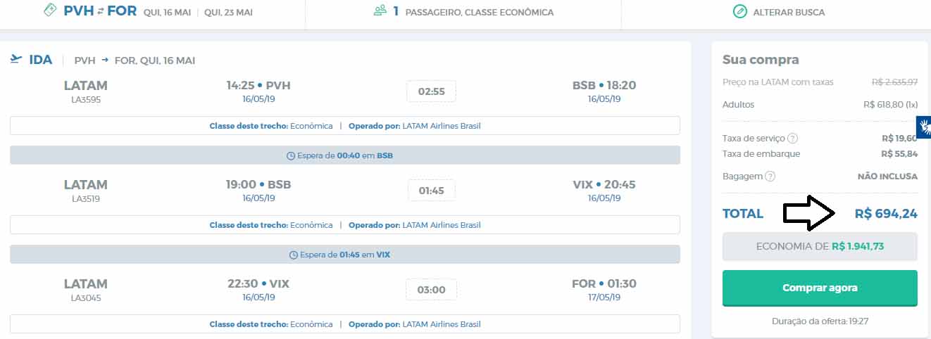 Até para os destinos turísticos com belas praias é possível viajar pagando menos! De Porto Velho para a cidade do Rio de Janeiro você viaja pagando pelas passagens de ida e volta R$ 672,84. Para Fortaleza você encontra os bilhetes de ida e volta por R$ 694 (veja imagem acima). Todos esses exemplos estão com as taxas de embarques incluídas.