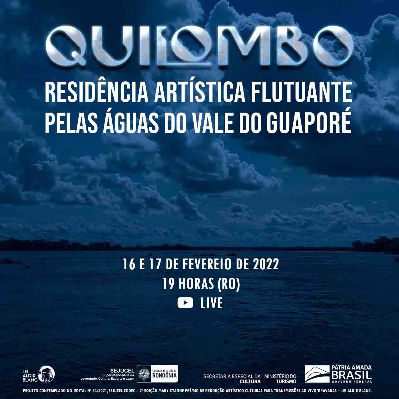 A diversidade das comunidades que fazem parte do Vale do Guaporé é tema da Live Quilombo, Residência Artística Flutuante pelas águas do Vale do Guaporé, com exibição da videodança: GuaritêBenguela e do documentário “Quilombola veias negras do Guaporé”. Após a exibição será realizado debate com convidados para discussão e aprofundamento do tema. O projeto será transmitido online nos dias 16 e 17 de fevereiro a partir das 19h.