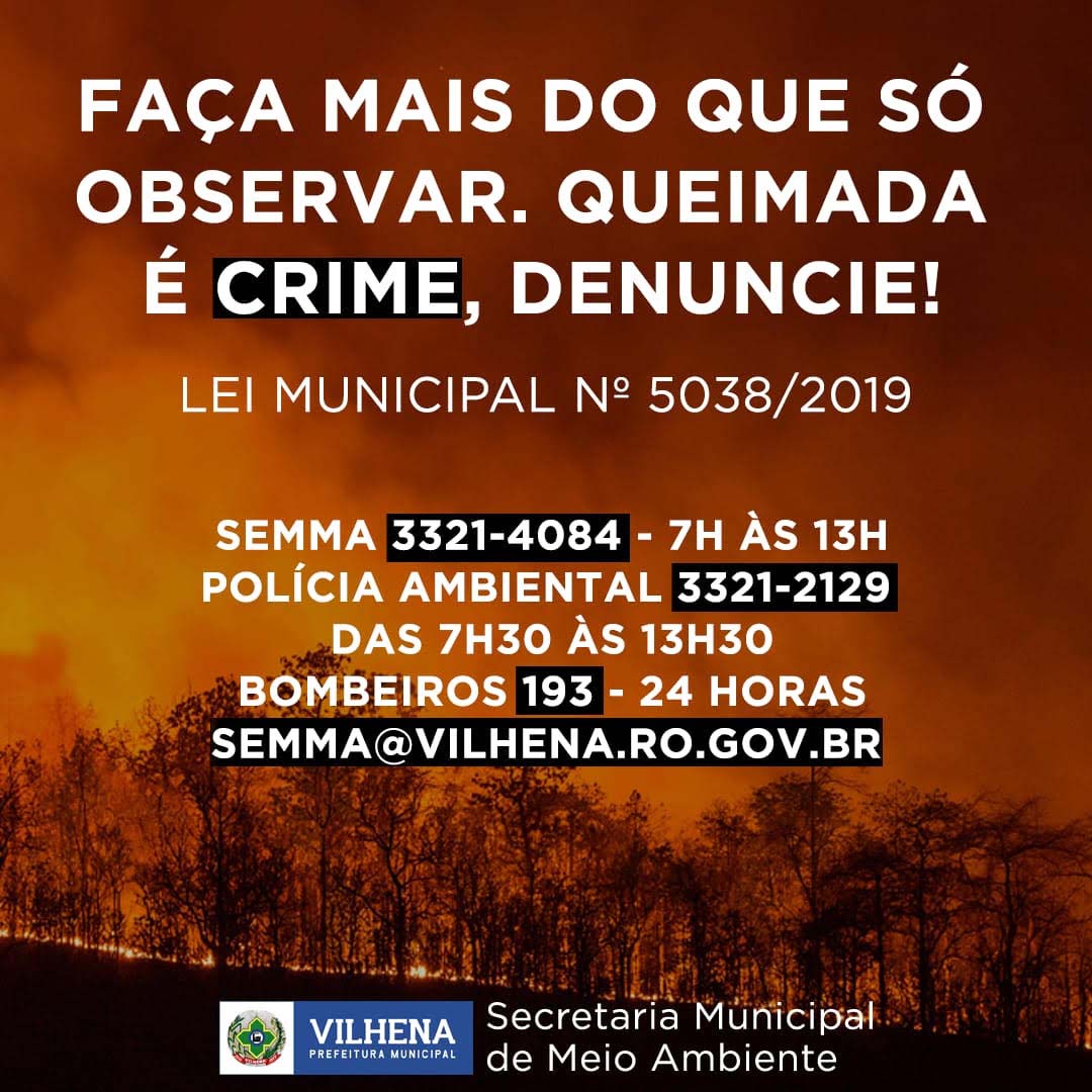 A seca está chegando e a Secretaria Municipal de Meio Ambiente (Semma) já iniciou sua campanha para prevenção de incêndios na zona urbana e rural. Desde a semana passada a secretaria divulga seus canais de denúncia e a partir de agora revela também as sanções que são impostas a quem desrespeitar a lei que proíbe queimadas na cidade.