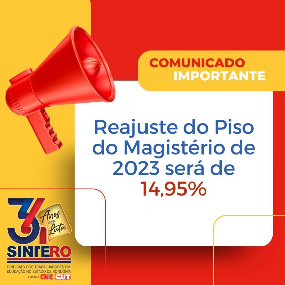 Em audiência no dia 23 de novembro, a secretária de Estado da Educação, Ana Lúcia Pacini, comprometeu-se de antemão ao Sintero, que fará a atualização do Piso de 2023, visto que tal recurso já possui previsão na Lei Orçamentária Anual (LOA). Sendo assim, a expectativa do sindicato é que a atualização ocorra o quanto antes, tendo em vista o compromisso firmado. Na audiência, o Sintero reivindicou que o mesmo percentual do Piso seja aplicado aos técnicos e técnicas educacionais. Destaca-se que a atualização do Piso do Magistério de 2022 foi atualizado a partir da negociação feita pelo sindicato, bem como o mesmo percentual aos demais trabalhadores em educação. Sendo assim, o Sintero atuará para que o mesmo seja cumprido em 2023.