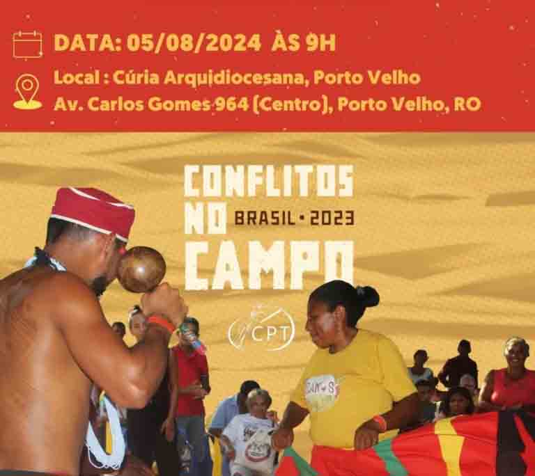 Em Rondônia, o lançamento dos dados do caderno de Conflitos no Campo 2023 acontecerá no próximo dia 05 de maio (segunda-feira), a partir das 09h no auditório da Cúria Arquidiocesana, localizado na Av. Carlos Gomes, 964, bairro do Marco. Porto Velho/RO.