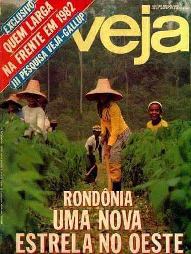 Essa é a capa de uma edição da revista Veja do ano de 1982, publicada logo após a Instalação, na qual Rondônia é apresentada aos brasileiros.