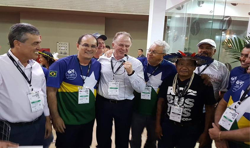 Rondônia esteve bem representada no evento com técnicos das instituições ligadas à produção do café e a torcida pela classificação dos nossos cafeicultores foi comandada pelo diretor superintendente Daniel Pereira e pelo secretário de agricultura Evandro Padovani. O mais interessante é que os demais participantes tentavam imitar a vibração dos rondonienses sempre após as manifestações. Até que a torcida cantou o hino Céus de Rondônia, quando acabaram de cantar nenhum outro estado cantou o seu hino, porque raramente alguém sabe o hino de seus estados, é claro que os rondonienses conhecem, sabem e cantaram nosso hino.