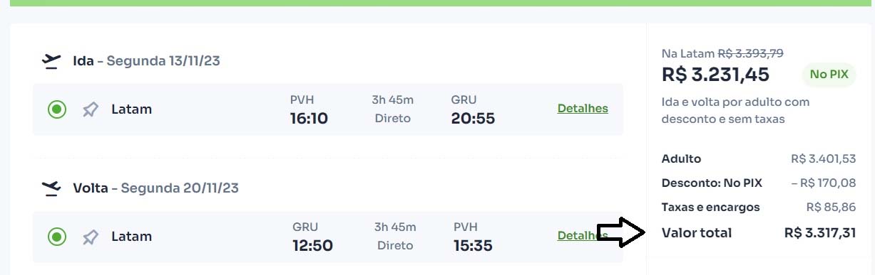 A LATAM oferece um voo direto e diário entre Porto Velho e Brasília. Para São Paulo (Guarulhos) a companhia tem decolagens da capital de Rondônia às segundas e sextas-feiras. Sem concorrência, os consumidores do estado são penalizados com os preços altos das passagens aéreas. Quem for viajar em novembro pagará pela ida e volta de Porto Velho para São Paulo o valor de R$ 3,3 mil. (Veja detalhes abaixo).