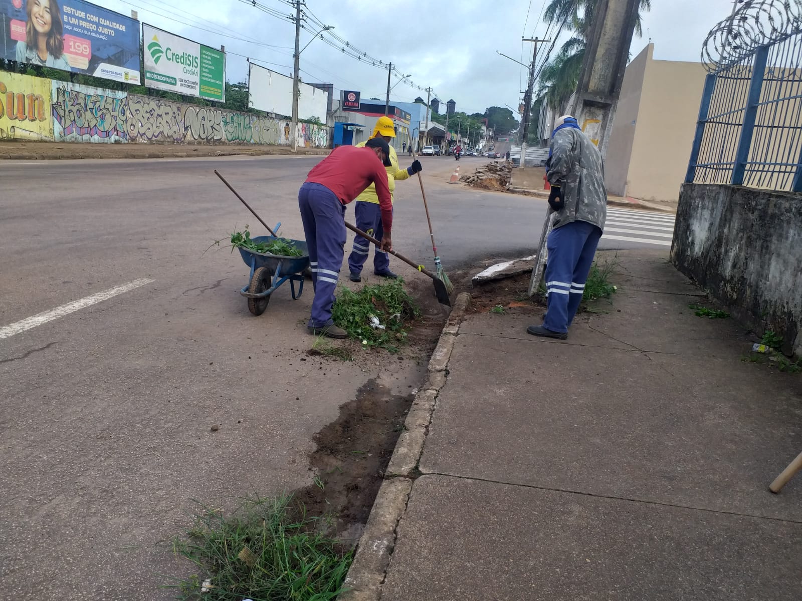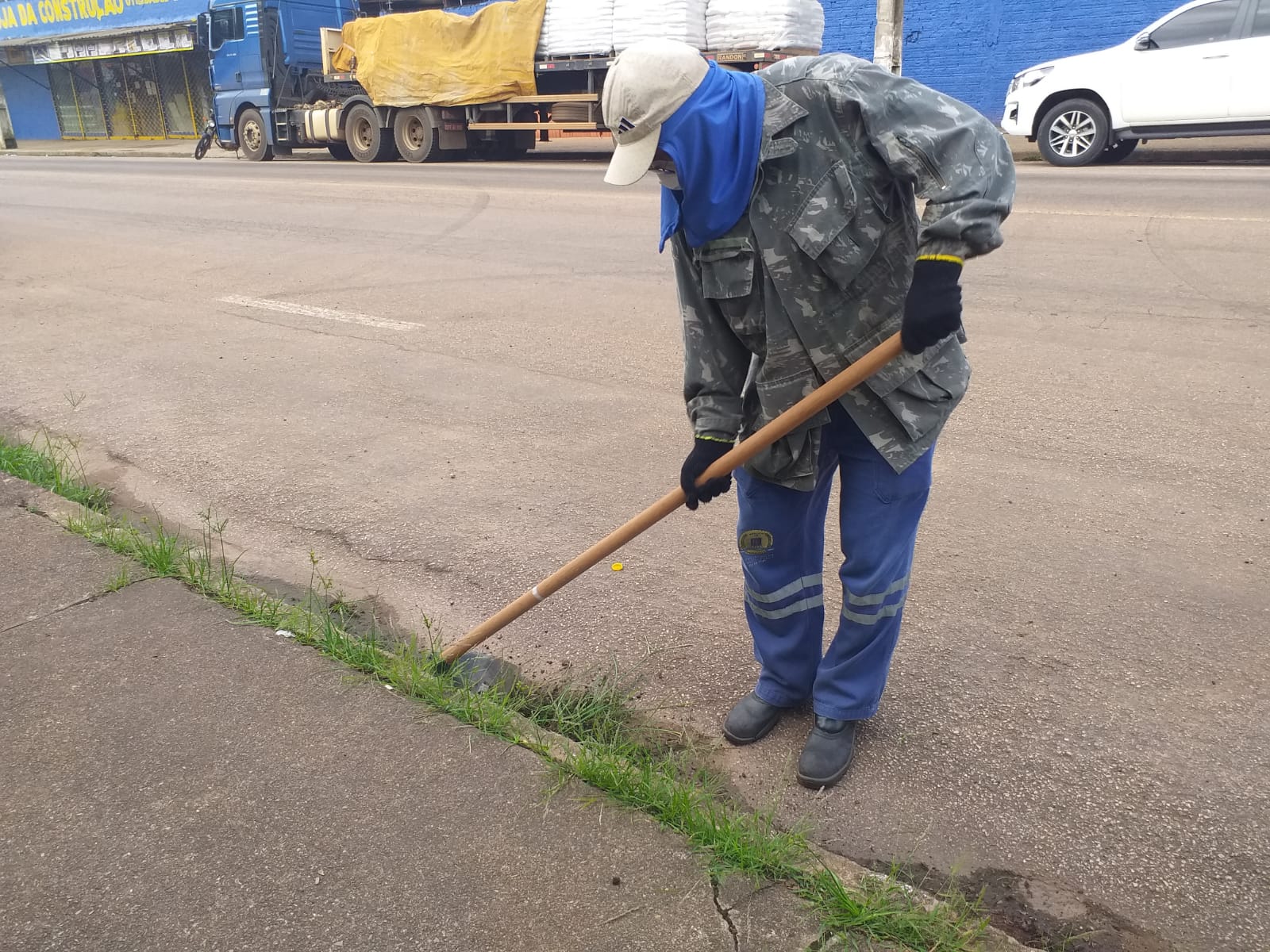 Cumprindo o planejamento estratégico da gestão municipal, uma equipe composta por 30 agentes de limpeza realiza serviços de roçagem, capina, raspagem do barro que fica acumulado na sarjeta, rastelagem e recolhimento do material inservível.