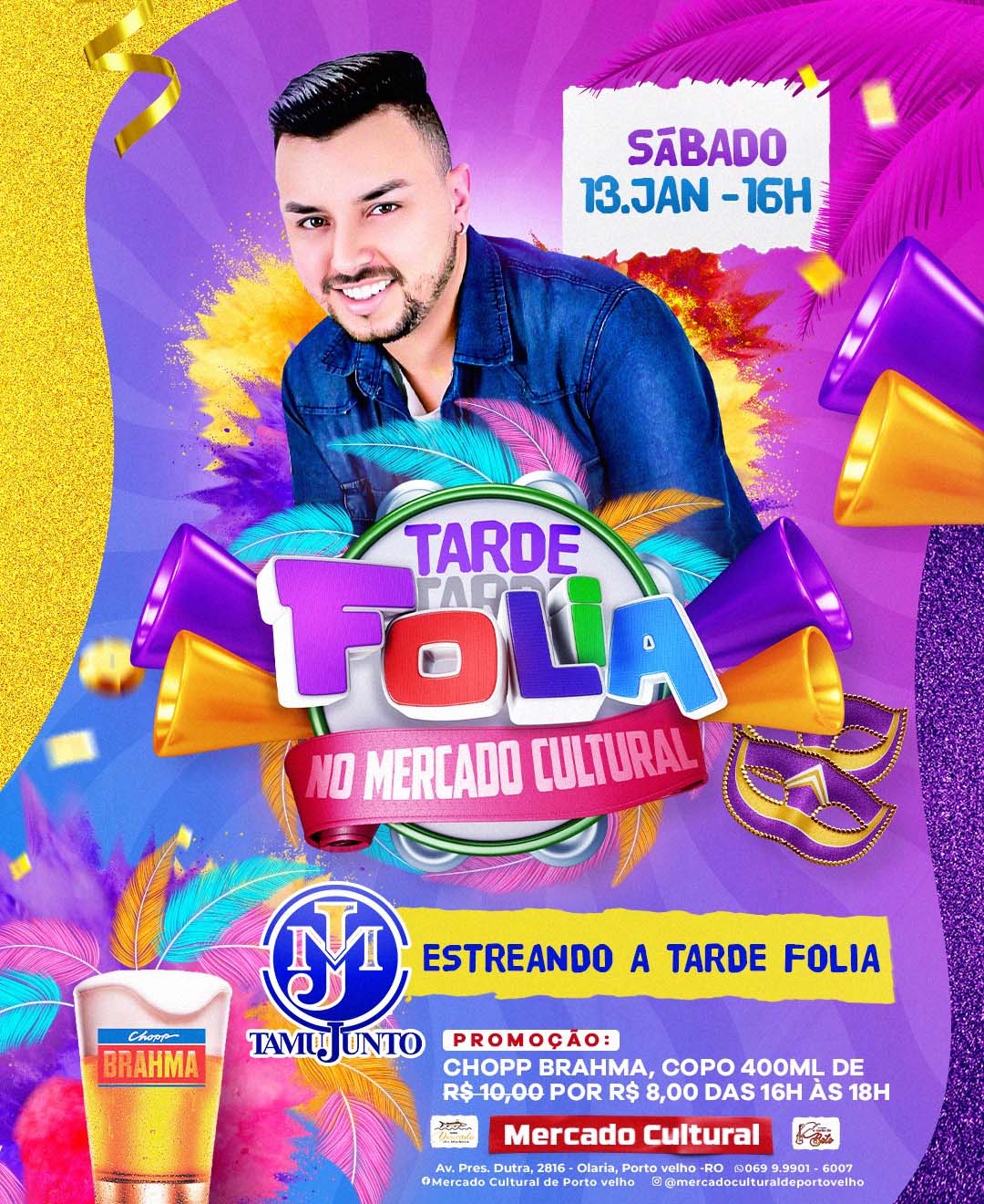 Sábado tem 'Tarde Folia' com show de TamuJunto no Mercado Cultural de Pvh