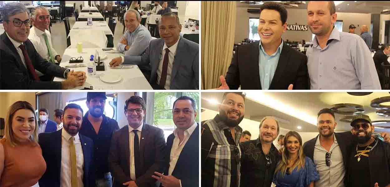 Nomes como Neymar Pai, Naiara Azevedo, Sorocaba, Diego & Arnaldo, Amado Batista, Rick, Netinho e Marcão do Povo registraram presença no local e tietaram Bolsonaro com fotos.