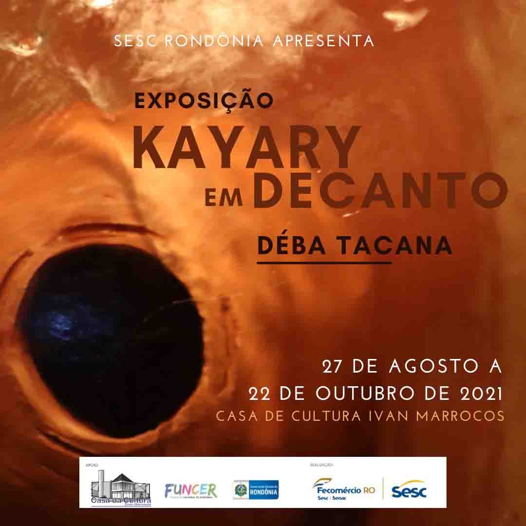 A exposição Kayary em Decanto apresentará as obras da artista Déba Tacana que, por meio do saber ancestral da cerâmica, fala sobre a memória do Rio Madeira, os corpos visíveis e invisíveis que nele se movem e habitam. O conceito poético da exposição abordará o espaço dos rios e cidades amazônicas a partir de pesquisas desenvolvidas no campo das artes visuais, arqueologia, patrimônio e memória de Rondônia