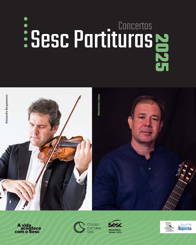 À noite, o público poderá conferir a performance no Concerto Sesc Partituras, marcado para às 20h. A apresentação contará com o violinista Alessandro Borgomanero, que já se apresentou frente a prestigiadas orquestras do mundo, e o violonista portovelhense Dhemétrius Lemos. Dhemétrius Lemos, que atualmente é professor de violão clássico na capital, atua como concertista e recitalista, e sua participação valoriza a produção musical rondoniense.