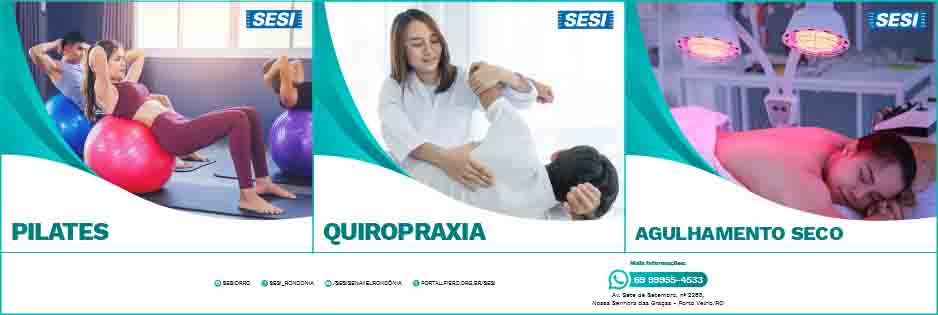 A unidade SESI Saúde de Porto Velho, iniciou os atendimentos de novos serviços, como pilates, quiropraxia e agulhamento seco, tendo à frente profissionais qualificados nas três modalidades, os fisioterapeutas Jackson Roberto e Amanda Campos da Silva. Os agendamentos podem ser feitos pelo número (69) 99955-4533.