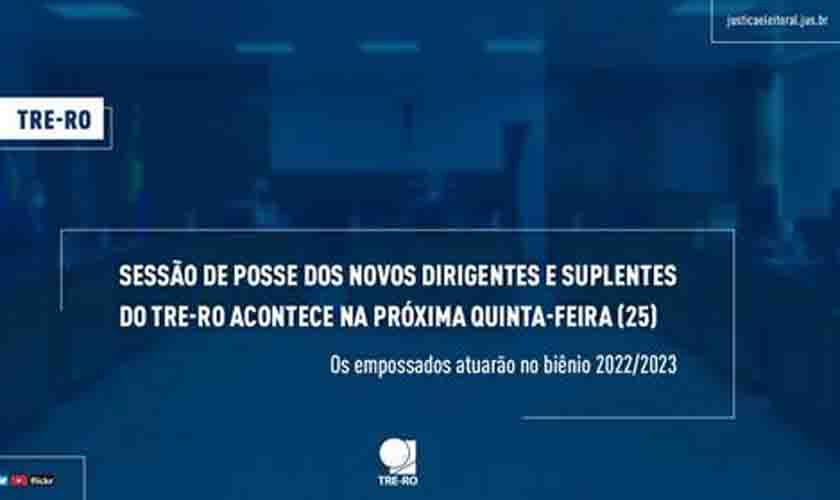 O Tribunal Regional Eleitoral de Rondônia realizará na próxima quinta-feira (25), a partir das 16h, no Plenário da Corte, de forma presencial e virtual, a Sessão Solene de posse e eleição do novo presidente e vice-presidente e corregedor regional eleitoral, assim como a posse dos seus respectivos suplentes, para o biênio 2022/2023.