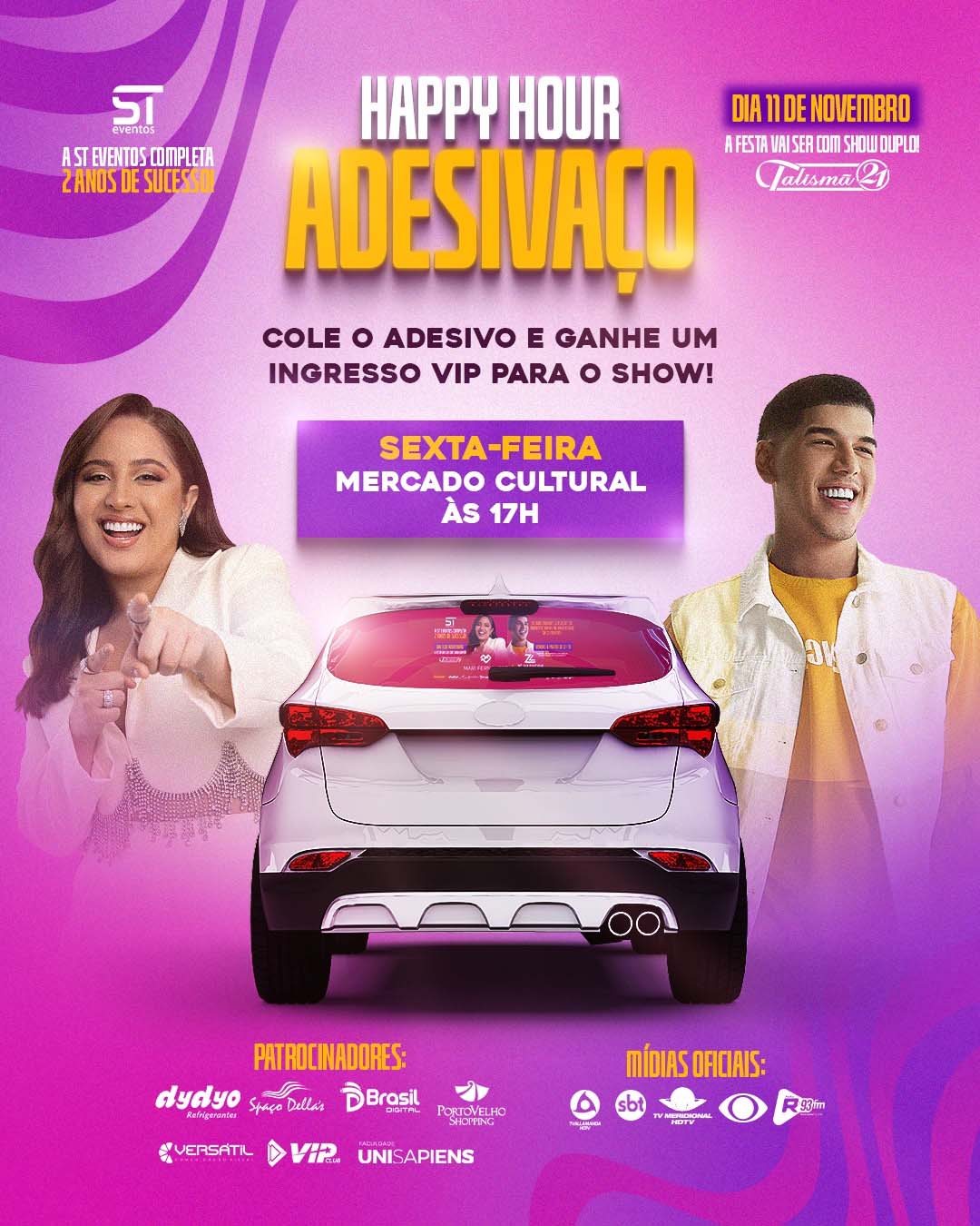 "Para participar é simples, basta levar o seu carro nesta sexta-feira, dia 6, as 17h, no Mercado Cultural, e colar o adesivo desse mega show no vidro traseiro para garantir o seu ingresso Vip. É lógico que tem algumas regrinhas para serem cumpridas!", explicou o empresário Sinezio Tapajós, da St Eventos, acrescentando que essa campanha promocional é limitada!