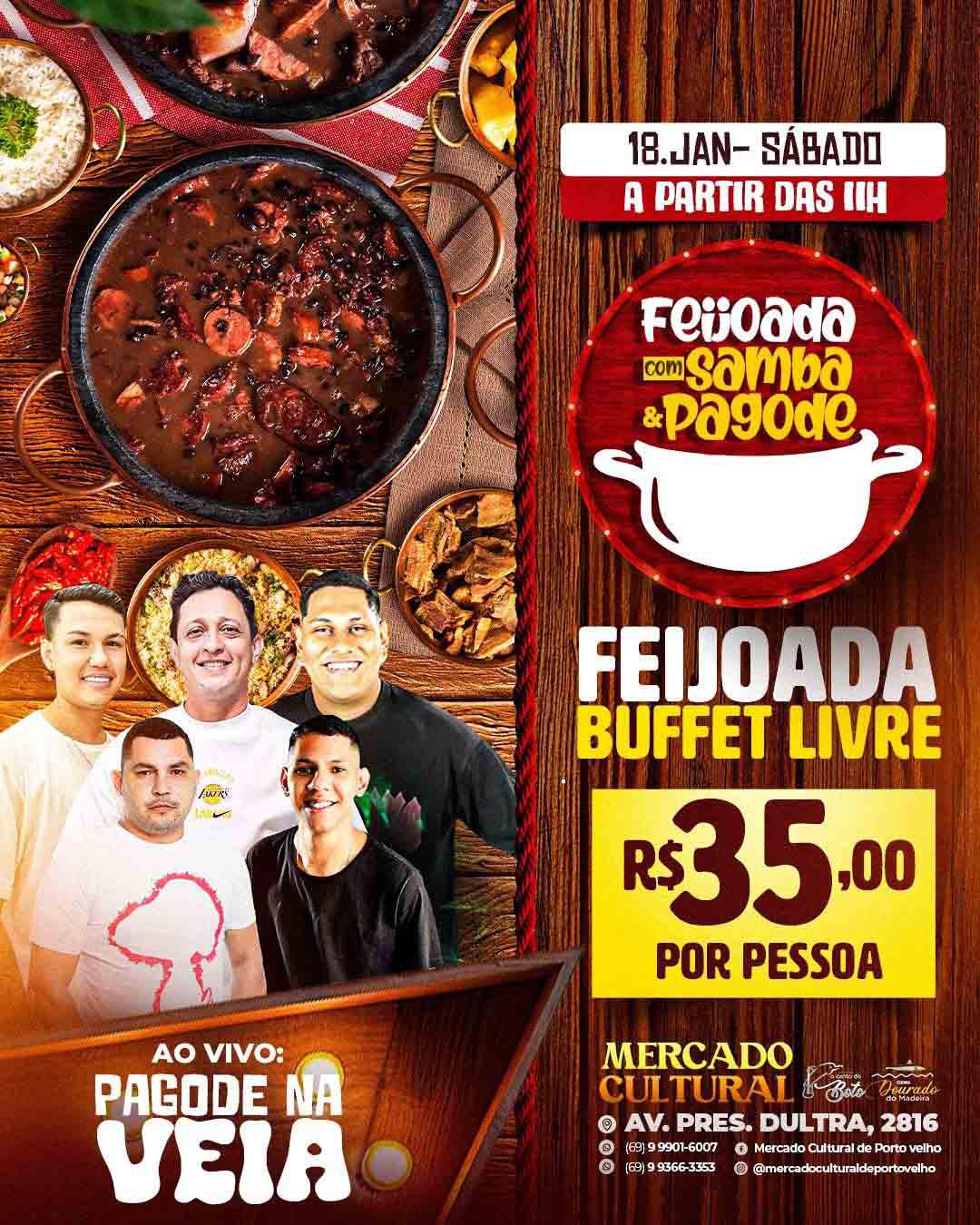 No sábado, dia 18, a partir das 12h, vai ter show do grupo Pagode Na Veia durante a realização da Feijoada Com Samba E Pagode. Na sequência, show de Nilson do Cavaco.