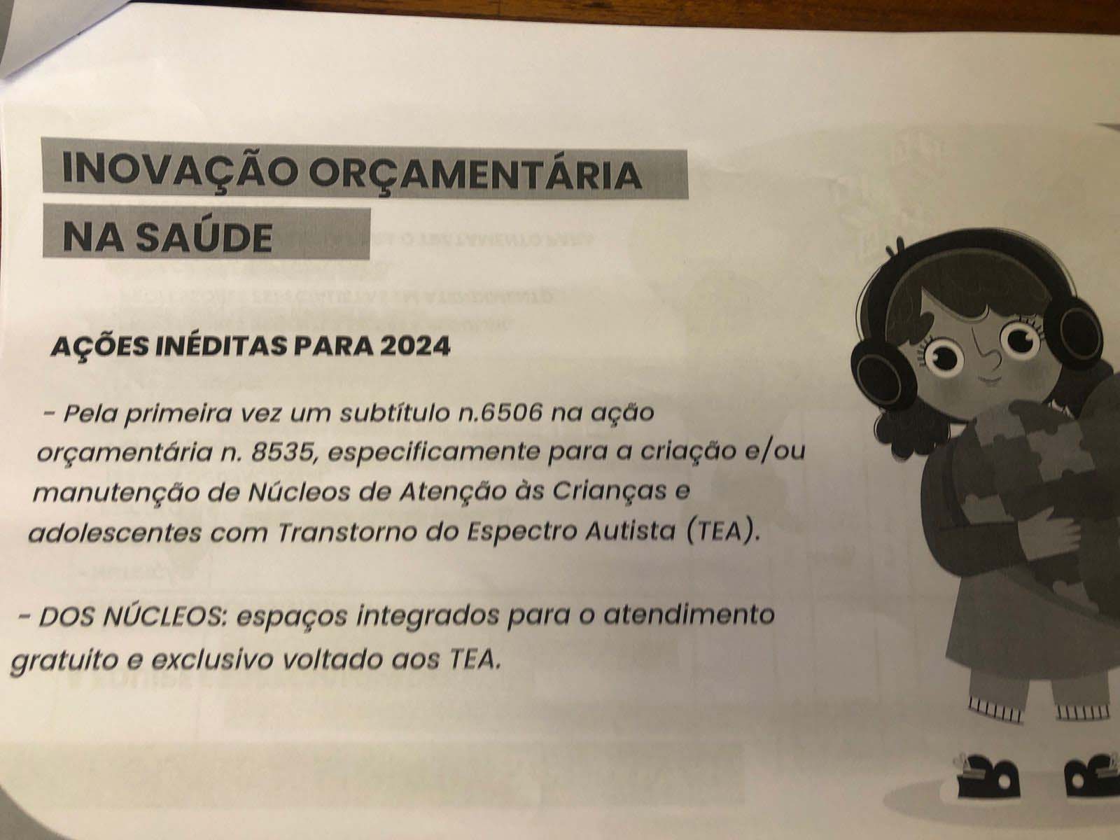 Na discussão no Congresso, foi anunciado que já estão assegurados na LOA de 2024, R$ 156 milhões pelo Ministério da Saúde, com a finalidade de estruturar os Núcleos de Atenção às Crianças com o Transtorno do Espectro Autista.