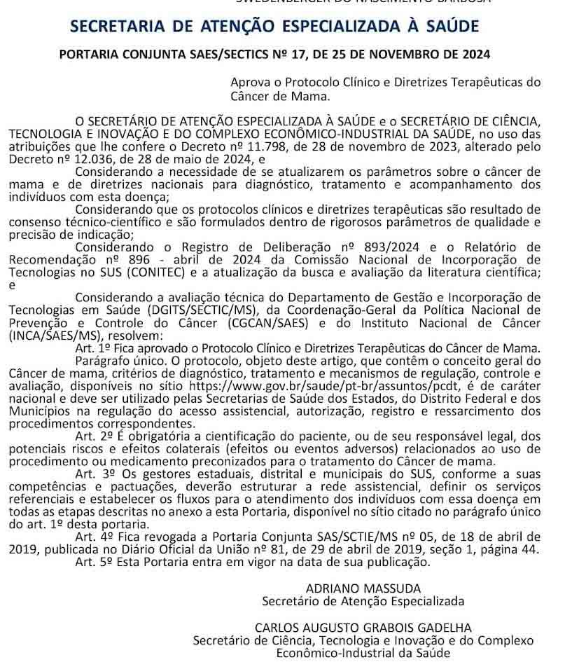 Ministério da Saúde publicou a medida, que traz mais meios de tratamento aos pacientes com câncer