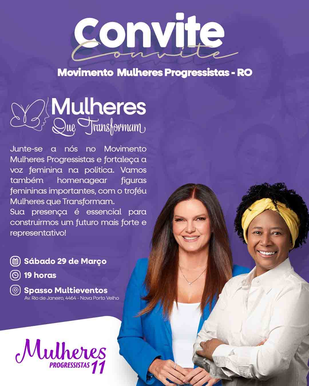 Serão 11 mulheres homenageadas e a expectativa é de que estejam presentes mulheres de todas as regiões do Estado. A presidente nacional do Movimento Mulheres Progressistas, Iracema Portella, também já confirmou presença.