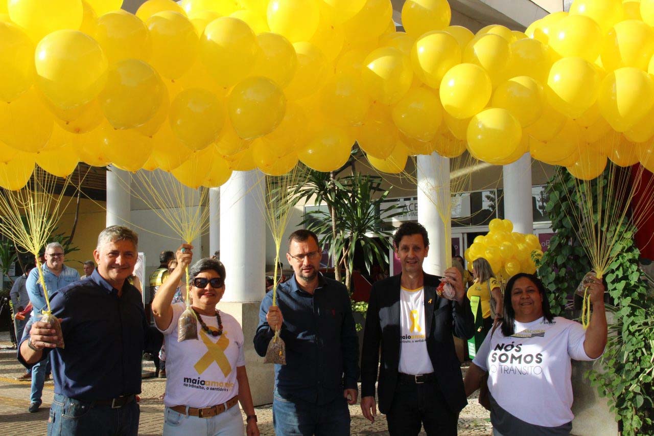 Autoridades soltaram balões amarelo para chamar a atenção da importância de se prevenir acidentes no trânsito