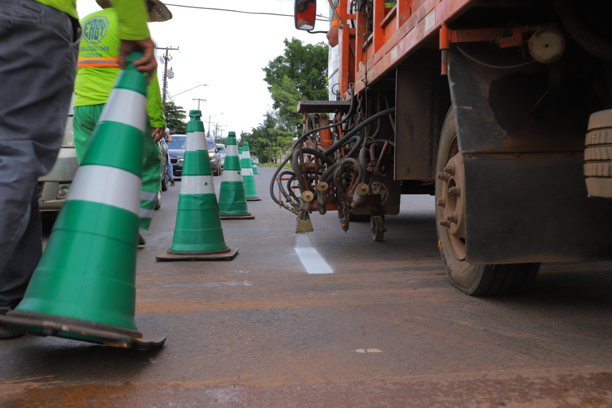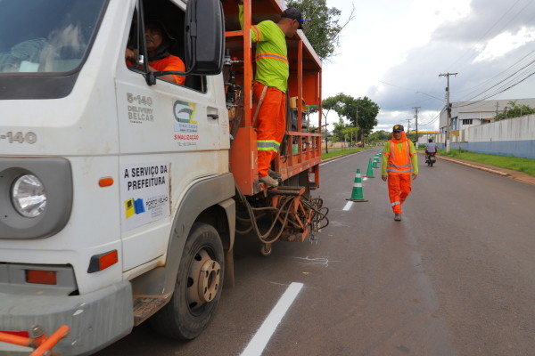 Sinalização da avenida Prefeito Chiquilito Erse é iniciada após recapeamento