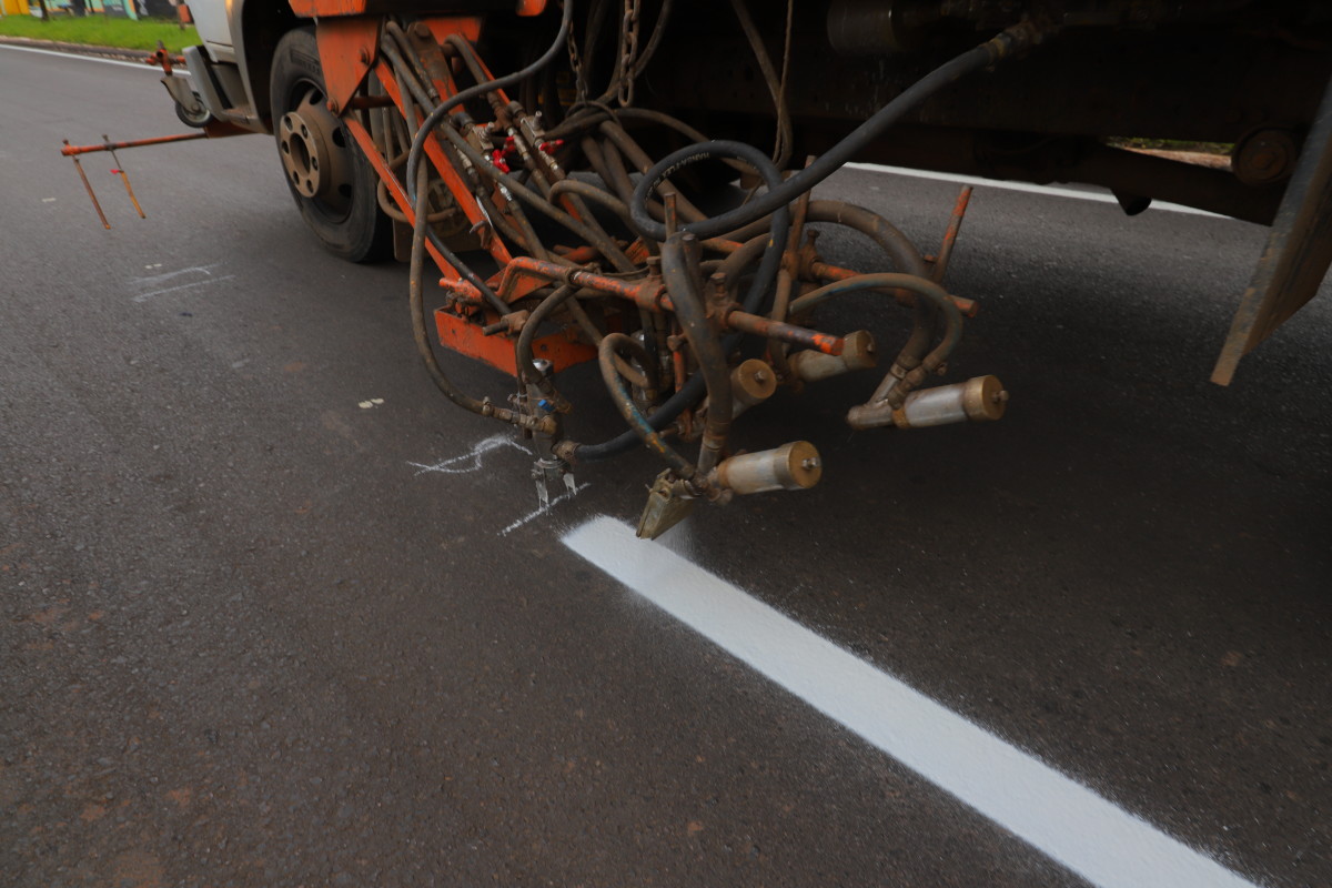 Ao todo, serão 20 faixas de pedestre com bolsões para motociclistas, todas instaladas em áreas de cruzamentos de semáforos, além da pintura para sinalizar a divisão de fluxo e estacionamento ao longo dos quase cinco quilômetros de extensão recuperados com a base asfáltica reconstituída.