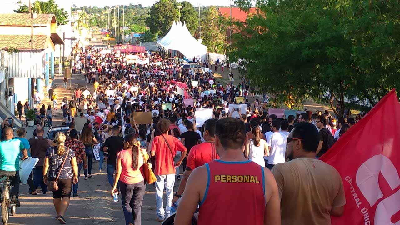 Em Porto Velho, os trabalhadores em educação se concentraram na sede do sindicato para participar do ato unificado com outras instituições. A grande passeata teve início às 16h, saindo da Praça das Três Caixas D’Águas e reuniu cerca de 5 mil pessoas. Cartazes com frases de ordem como "Menos cortes. Mais investimentos" e “Contra o desmonte da educação” puderam ser observados durante o movimento.
