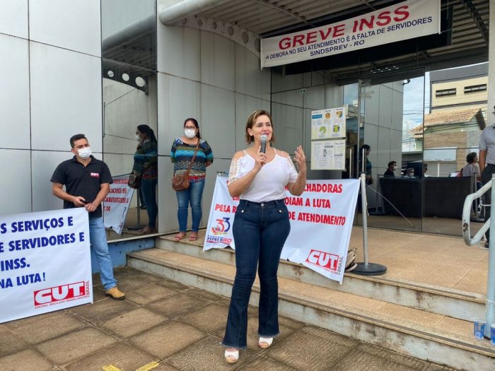 "A reivindicação dessa categoria é justa e necessária, pois diariamente milhares de pessoas buscam por suas aposentadorias e benefícios e sofrem com longas filas de espera, ocasionados principalmente pela falta de estrutura e de profissionais especializados. Garantir melhores condições de trabalho aos servidores do INSS é assegurar dignidade e respeito para toda população brasileira”, disse Lionilda Simão, presidenta do Sintero.