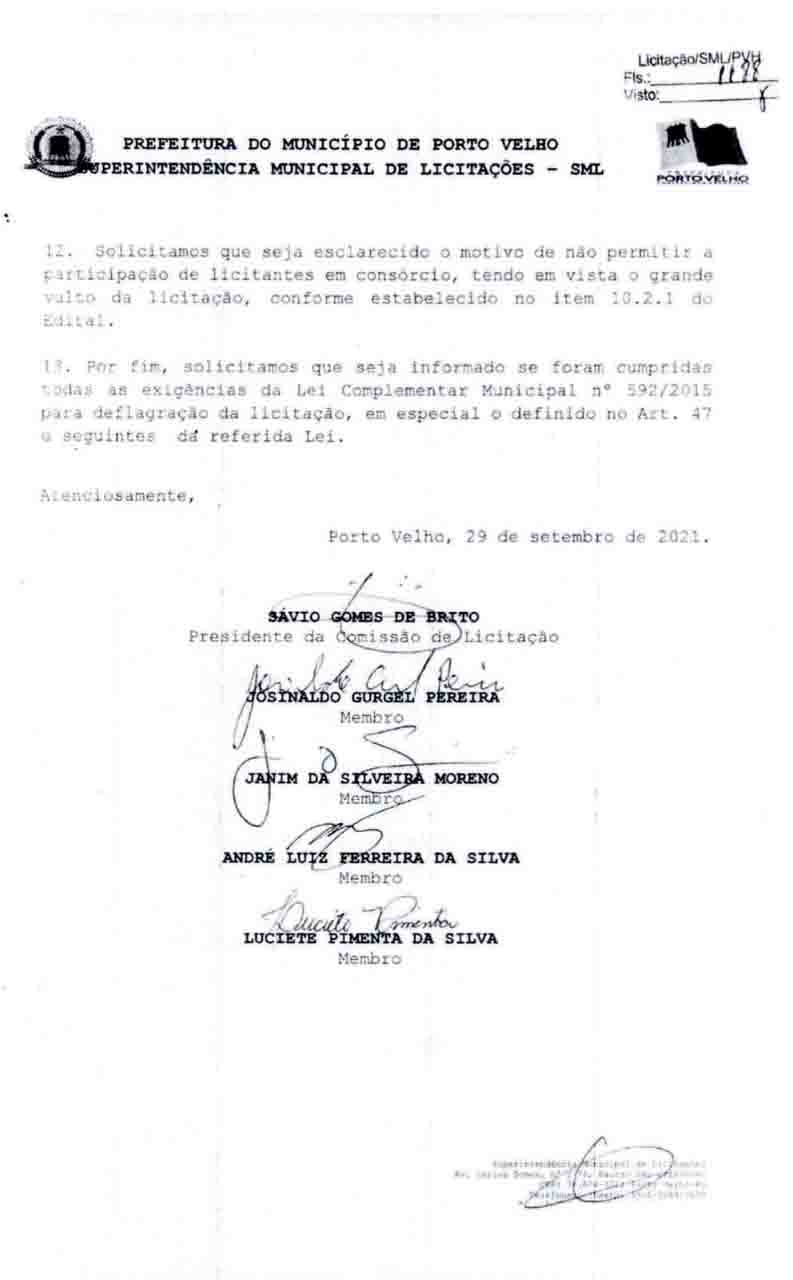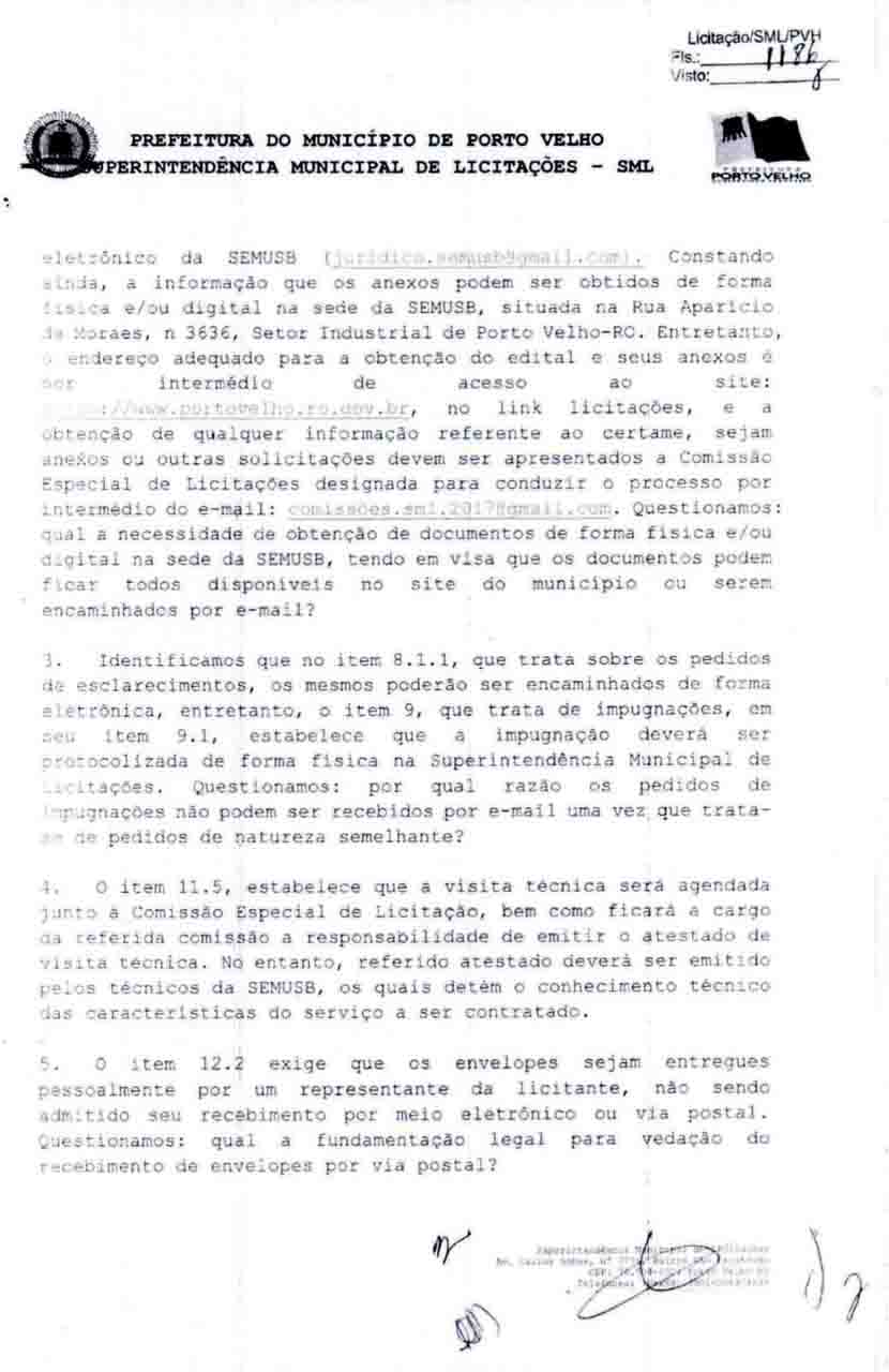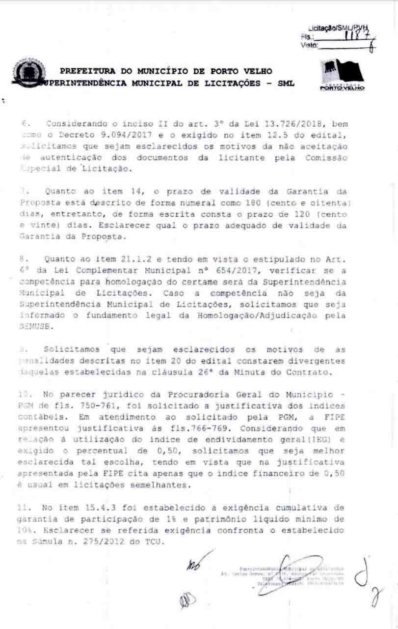 A SML pediu esclarecimentos também sobre os motivos da Semusb não ainda o porquê ainda que Semusb não aceitar autenticação dos documentos da licitante pela Comissão Especial de Licitação.