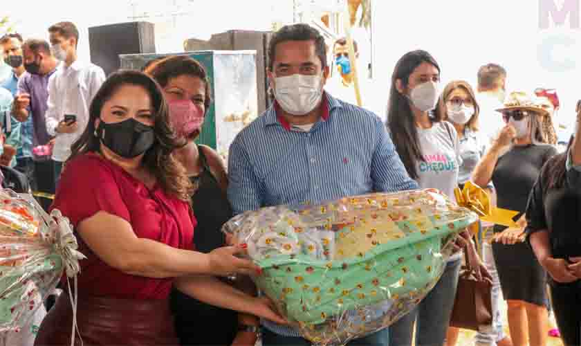 Durante a solenidade, a primeira-dama do Estado e titular da Seas, Luana Rocha, entregou kits de enxoval a gestantes do município, do programa Mamãe Cheguei, executado pelo Governo de Rondônia em parceria com a Secretaria Municipal de Assistência Social (Semas).