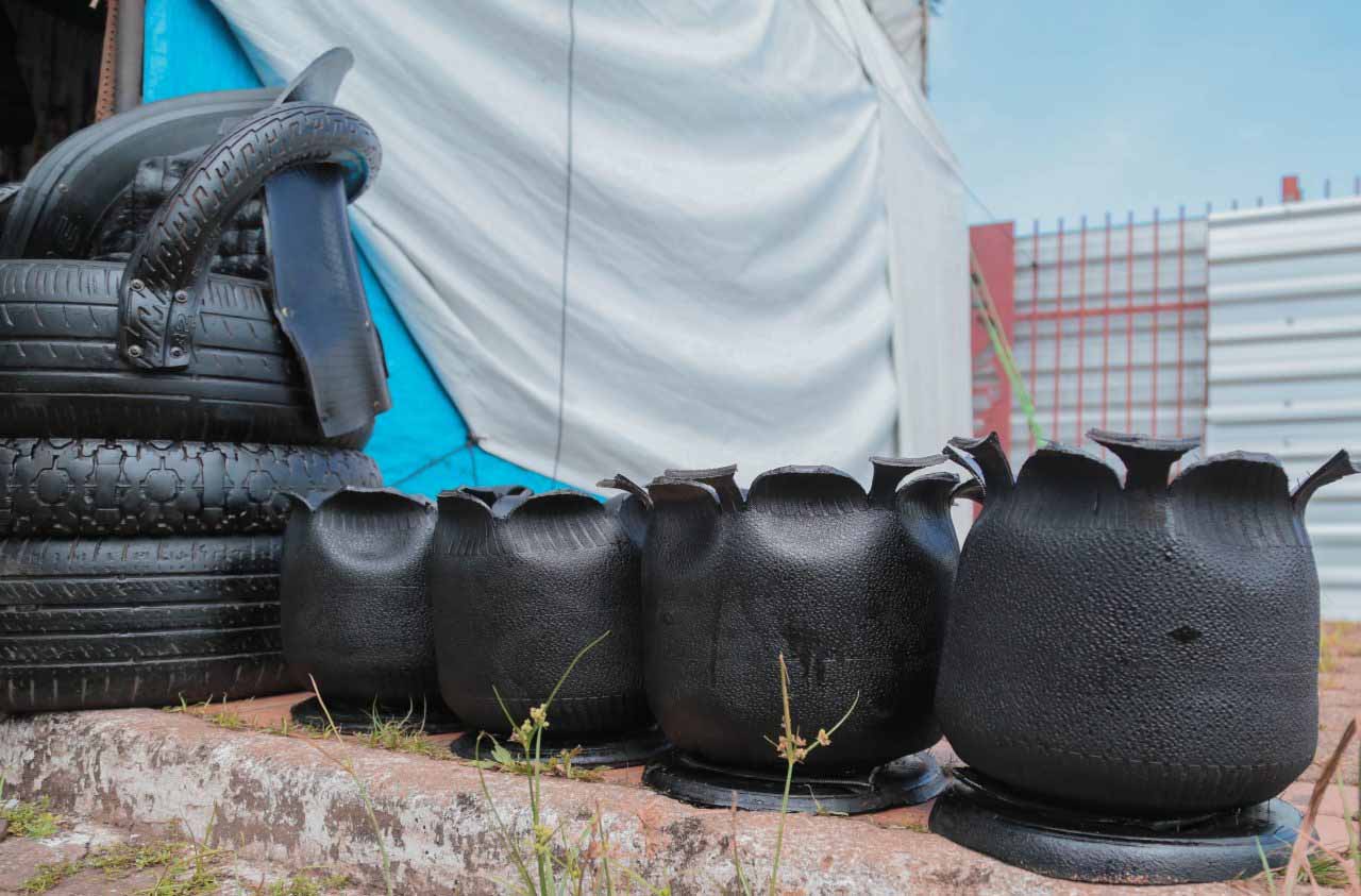 Pneus descartados são retirados do meio ambiente e reaproveitados