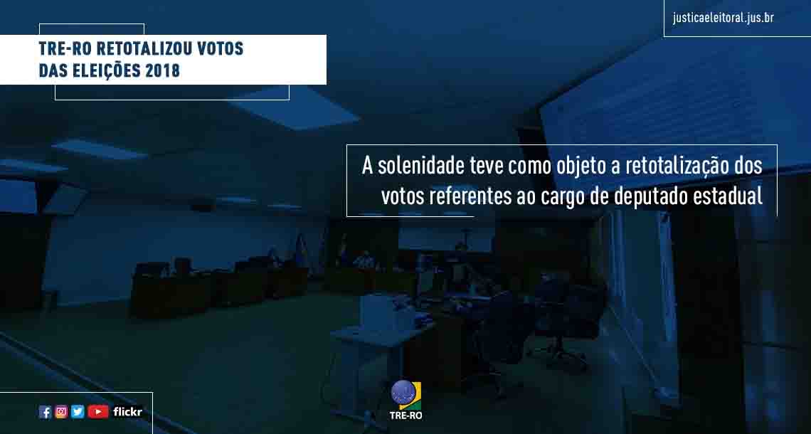 O Tribunal Regional Eleitoral de Rondônia realizou na manhã desta terça-feira, 28 de setembro, a cerimônia de retotalização dos votos referentes ao cargo de deputado estadual, das eleições 2018, em razão de decisão proferida nos autos do Recurso Ordinário Eleitoral n. 0601867-31.2018.6.22.0000.
