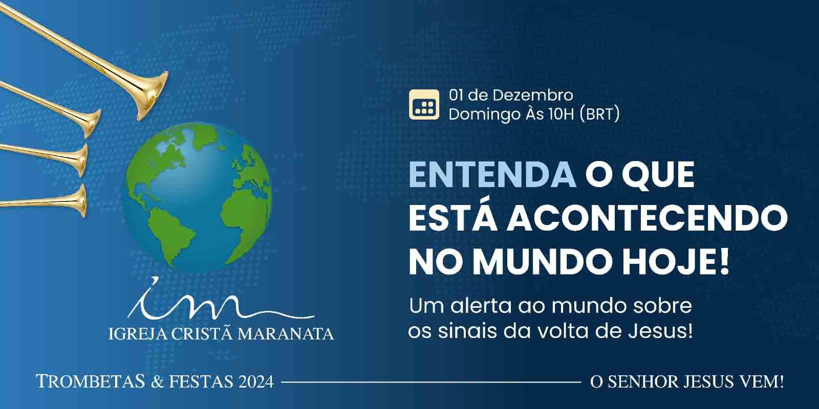 Domingo, dia 1º de dezembro, às 10 horas da manhã será o dia em que cerca de um bilhão de pessoas em todo o mundo poderão conhecer o grande projeto de resgate e salvação que Deus preparou para o homem. Trata-se do Trombetas e Festas em sua quarta edição, evento capitaneado pela Igreja Cristã Maranata, com o propósito de anunciar uma mensagem bíblica anunciada a cerca de dois mil anos pelo próprio Senhor Jesus.