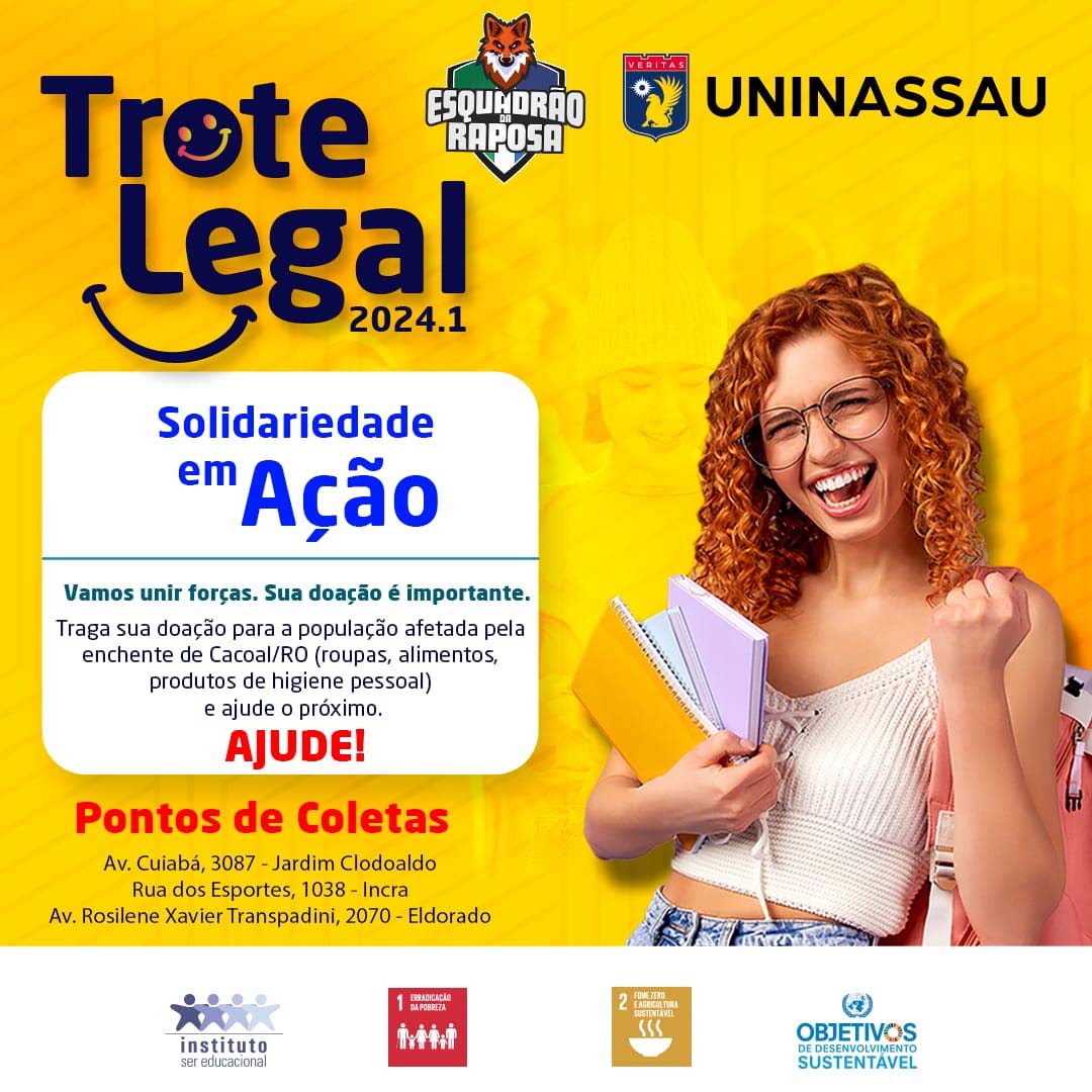Em meio às consequências da enchente que assolou Cacoal na última segunda-feira (25), deixando aproximadamente 200 famílias atingidas e 150 desabrigadas, de acordo com a defesa civil do município, a solidariedade emerge como uma luz de esperança. Em um gesto de apoio às comunidades afetadas, a UNINASSAU, por meio do projeto Trote Legal e em parceria com o Esquadrão da Raposa (torcida organizada do União Cacoalense) vira um ponto de arrecadação de doações para esses necessitados.