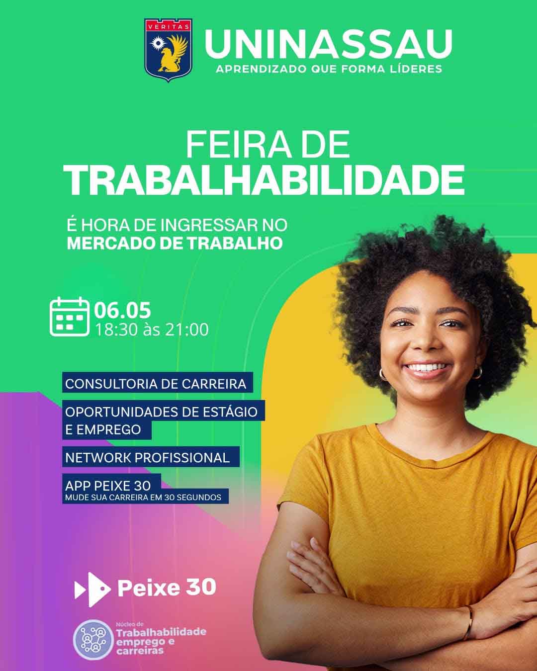A UNINASSAU Cacoal realiza, no dia 6 de maio, das 18h30 às 21h, a Feira de Trabalhabilidade. O evento é voltado para impulsionar a carreira de estudantes e profissionais da região. Com o objetivo de conectar talentos ao mercado de trabalho, são oferecidas consultoria de carreira, orientações profissionais e vagas de estágio e emprego em parceria com dez empresas locais.