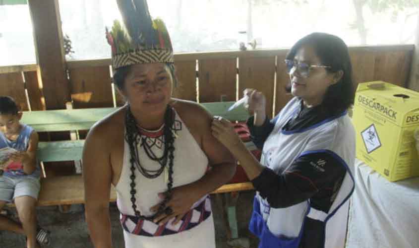 Na Aldeia Yakarerupa até a cacique do povo indígena Guarasugw E recebeu doses de vacina