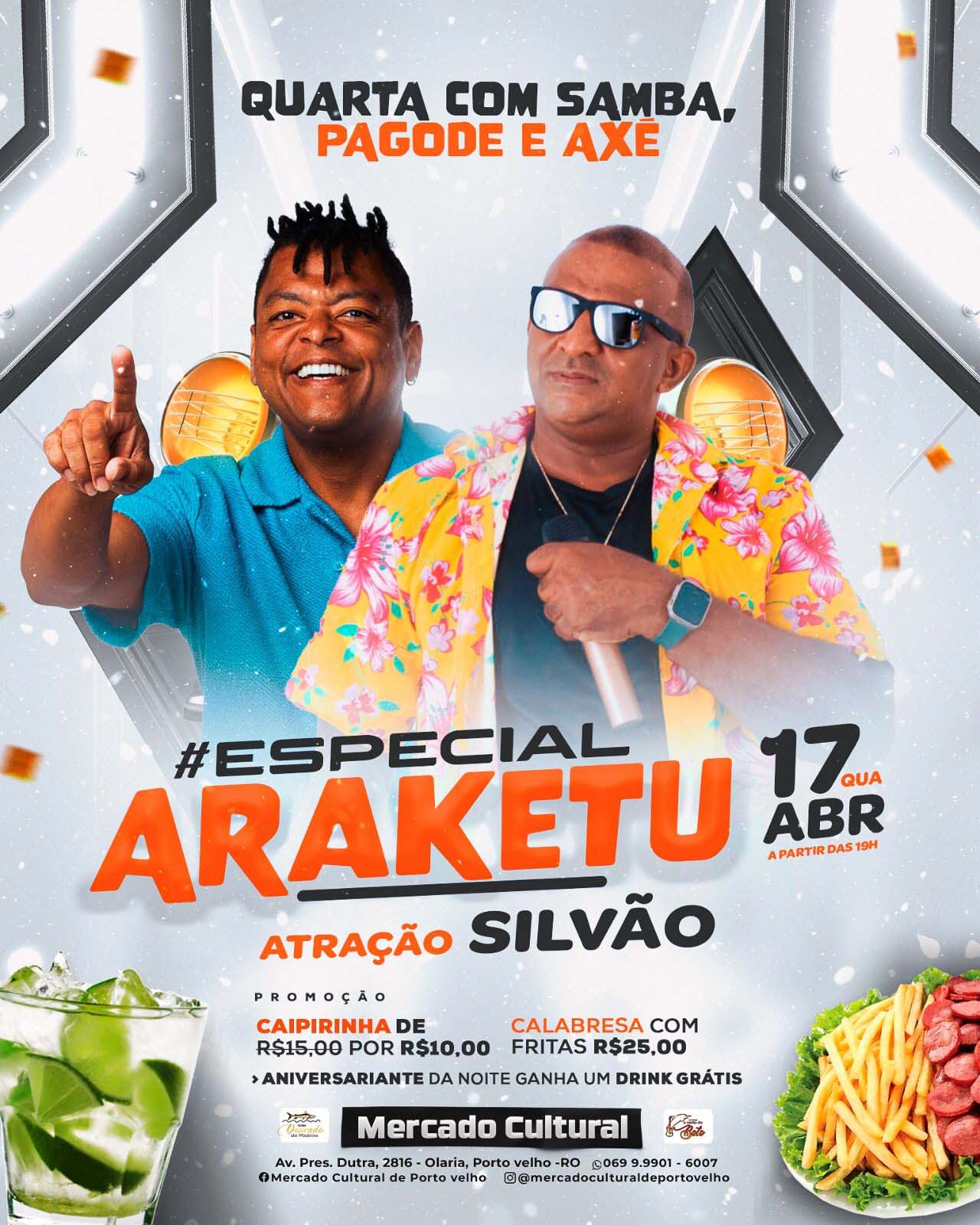 "A edição do dia 17, da nossa 'Quarta N°1', o consagrado músico Silvão vai mandar o especial Ara Ketu' no palco do Mercado Cultural", disse o empresário Sinezio Tapajós, permissionário do box Dourado do Madeira, acrescentando que o show é gratuito.