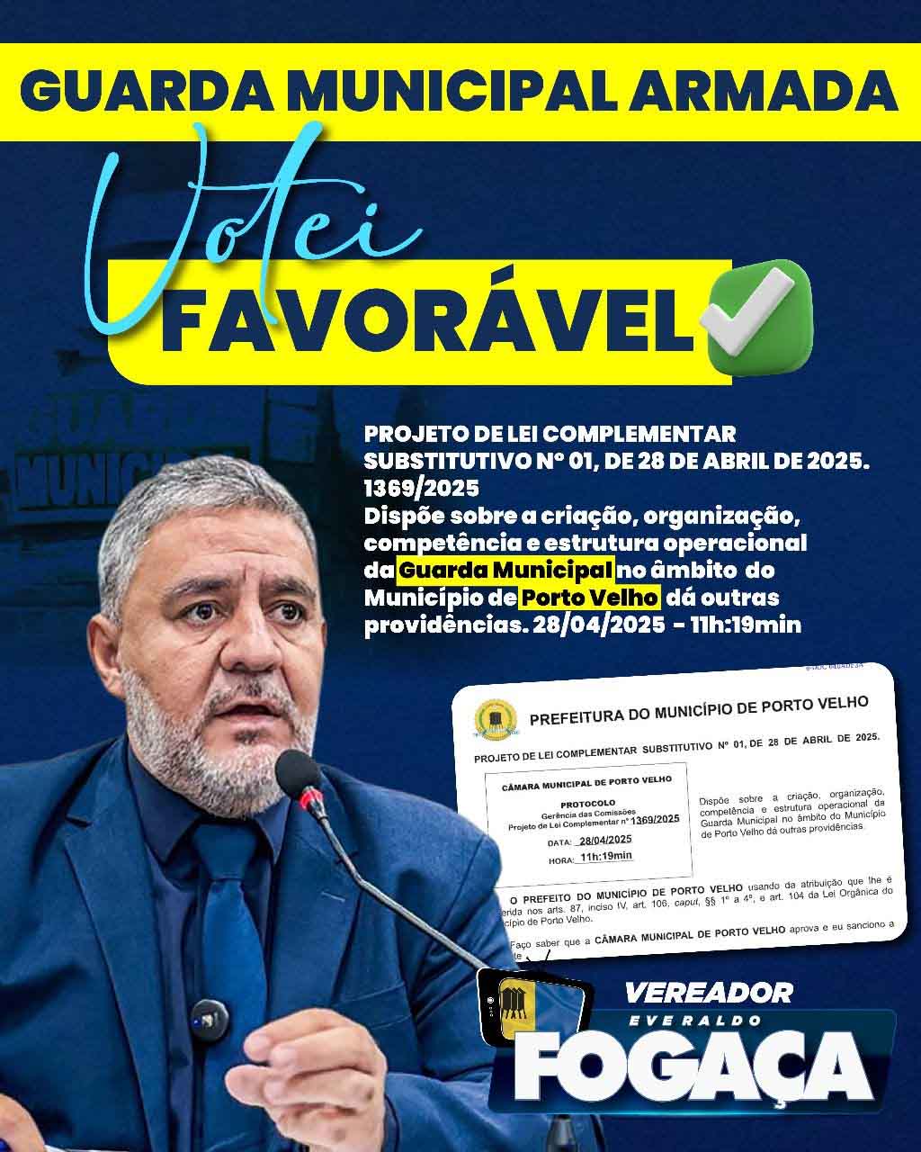Um dos principais defensores da proposta, o vereador Everaldo Fogaça (PSD), classificou a aprovação como um "marco para a segurança de Porto Velho".