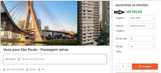 Brasília Curitiba Florianópolis Fortaleza Foz do Iguaçu João Pessoa Maceió Manaus Natal Porto Alegre Porto Seguro Recife Rio de Janeiro Salvador São Luís São Paulo menor preço R$ 189