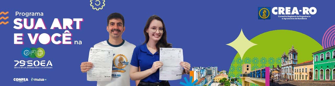 O Conselho Regional de Engenharia e Agronomia de Rondônia (Crea-RO) lança o Programa “Sua ART e Você na 79ª SOEA”, visando proporcionar aos profissionais que se destacarem na emissão de ARTs (Anotações de Responsabilidade Técnica) a chance de participar da 79ª Semana Oficial da Engenharia e da Agronomia (SOEA).