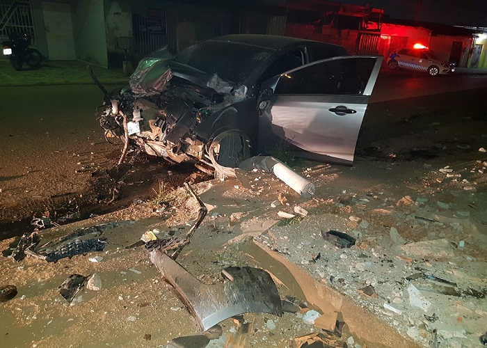 Os policiais do Batalhão de Trânsito informaram ao TUDORONDONIA que o motorista de aplicativo seguia em alta velocidade na Avenida algodoeiro, sentido Avenida Tancredo Neves, quando perdeu o controle da direção e invadiu o muro de uma residência, danificando por completo a frente da casa e deixando o carro, um HB20, destruído.