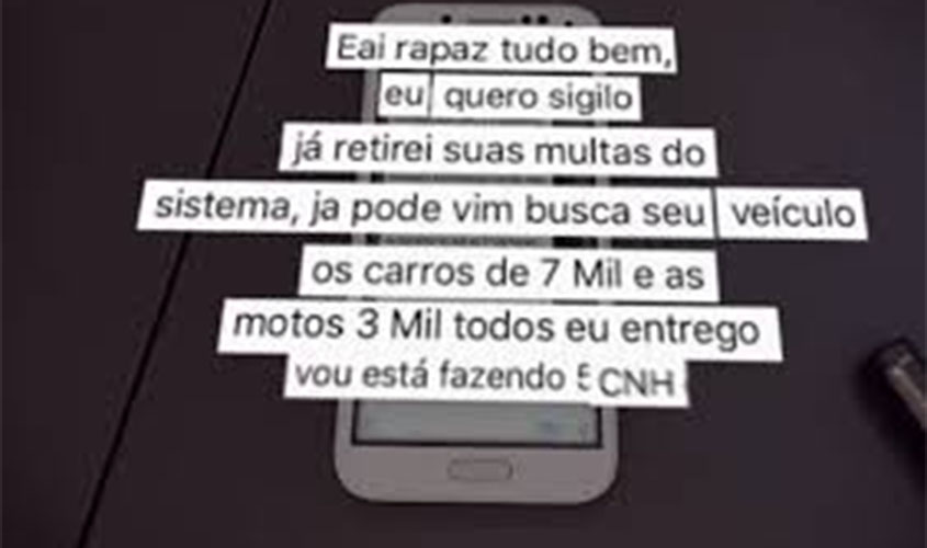 Os estelionatários enviam mensagens de texto, via aplicativo WhatsApp, se passando por funcionários do DETRAN, oferecendo carros no valor de R$ 9.000,00 (nove mil reais) e motocicletas por R$ 3.000,00 (três mil reais) às vítimas, todos com valores abaixo do de mercad, e Carteira Nacional de Habilitação no valor de R$ 1.600,00 (hum mil e seiscentos reais), sem precisar fazer exames.