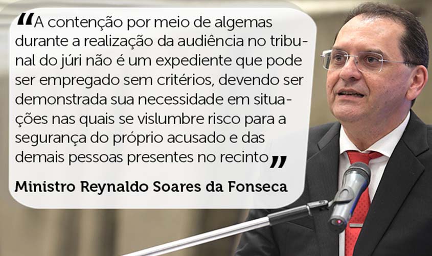 Em outro caso, no HC 506.975, o ministro Reynaldo Soares da Fonseca reforçou o entendimento do tribunal no sentido de que o uso de algemas durante a sessão do júri necessita de fundamentação.