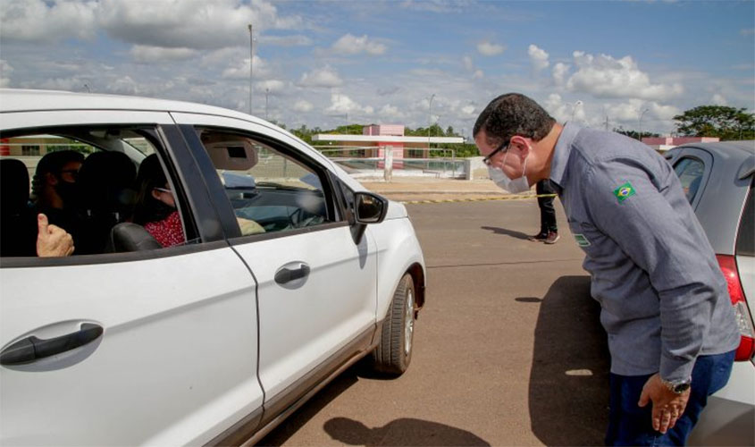 Governador Marcos Rocha saudou as pessoas que fizeram teste rápido durante drive thru