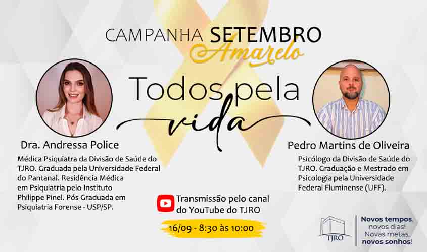 TJRO promove palestra sobre saúde mental no Setembro Amarelo