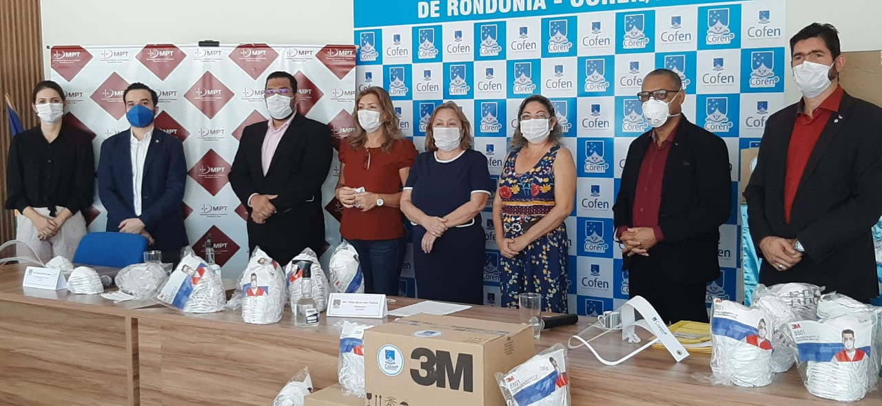 Um acordo de cooperação entre Ministério Público Federal-MPF, Conselho Regional de Enfermagem-COREN, Conselho Regional de Fisioterapia-CREFITO, Sindicato dos Médicos de Rondônia-SIMERO, Sindicato dos Trabalhadores em Saúde do Estado de Rondônia-SINDSAUDE e Sindicato dos Farmacêuticos de Rondônia- SINFAR, gerou a aquisição 70 mil EPI’s (10.080 máscaras PFF2, 10 mil face shield e 50 mil aventais impermeáveis), adquiridos por meio de recursos decorrentes da Ação Civil Pública que tramita na 2ª Vara do Trabalho de Porto Velho, no Tribunal Regional do Trabalho da 14ª Região.