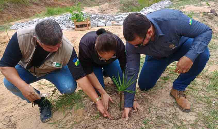 Foram realizadas o plantio de mudas de espécies nativas, como buriti, copaíba, jucá, samaúma, baguinha e orelha de macaco